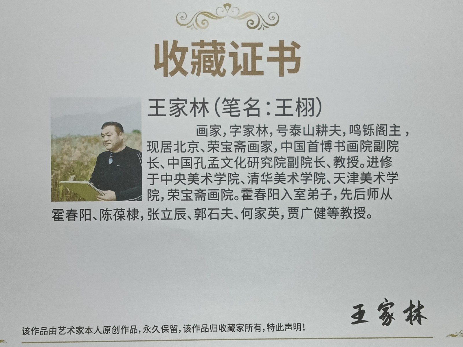 | 作者简介 | 王家林(b.1966),山东泰安人。荣宝斋书画联谊会会员、中国书画家协会理事、山东省美术家协会会员,泰安市美术家协会副主席。进修于中央美术学院、清华美术学院、天津美术学院、荣宝斋画院,师承张立辰、霍春阳、陈葆棣、何家英、贾广健等。现居北京,任中国首博书画院副院长、中国孔孟文化研究院副院长,其作品被荣宝斋画院、白俄罗斯使馆等多家艺术机构收藏,出版有多部个人画册。 | ||